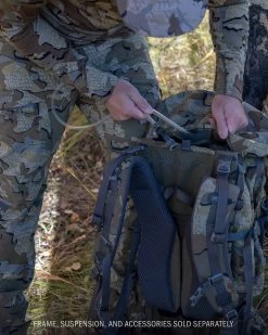 PRO LT Bags transition into Load Sling Mode, which opens an extra 2500 cubic inches of storage for hauling meat or gear between the frame and bag.