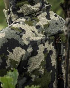 Its outer-layer fit comfortably layers over a safety harness, insulated mid-layer, and base layer—while its articulated design, high-stretch fabric, and streamlined forearms allow you to shoot without interference or restricting mobility.
