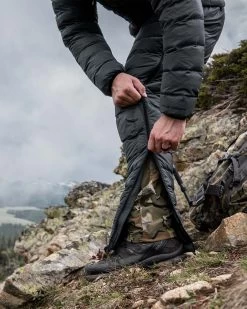 For ultralight packability, the pant self-stows in its right-hand pocket with an envelope closure. Alternatively, the pant can be stowed inside the Super Down LT Jacket’s stow pocket for a one-piece kit pack solution.